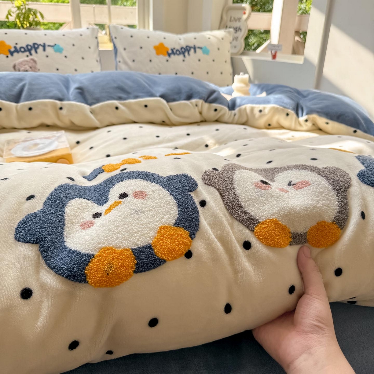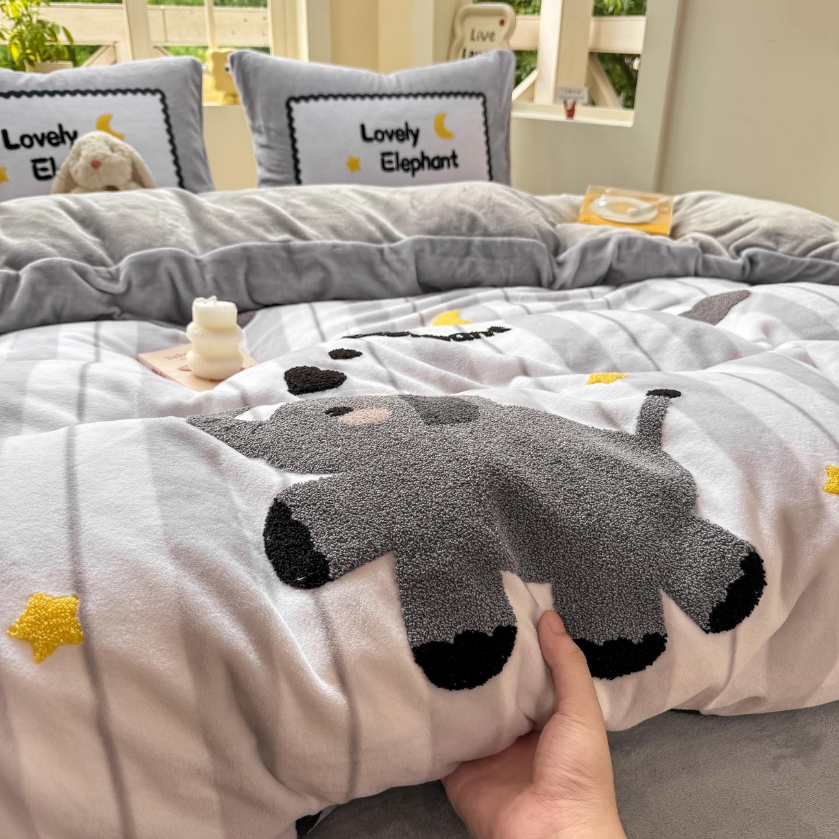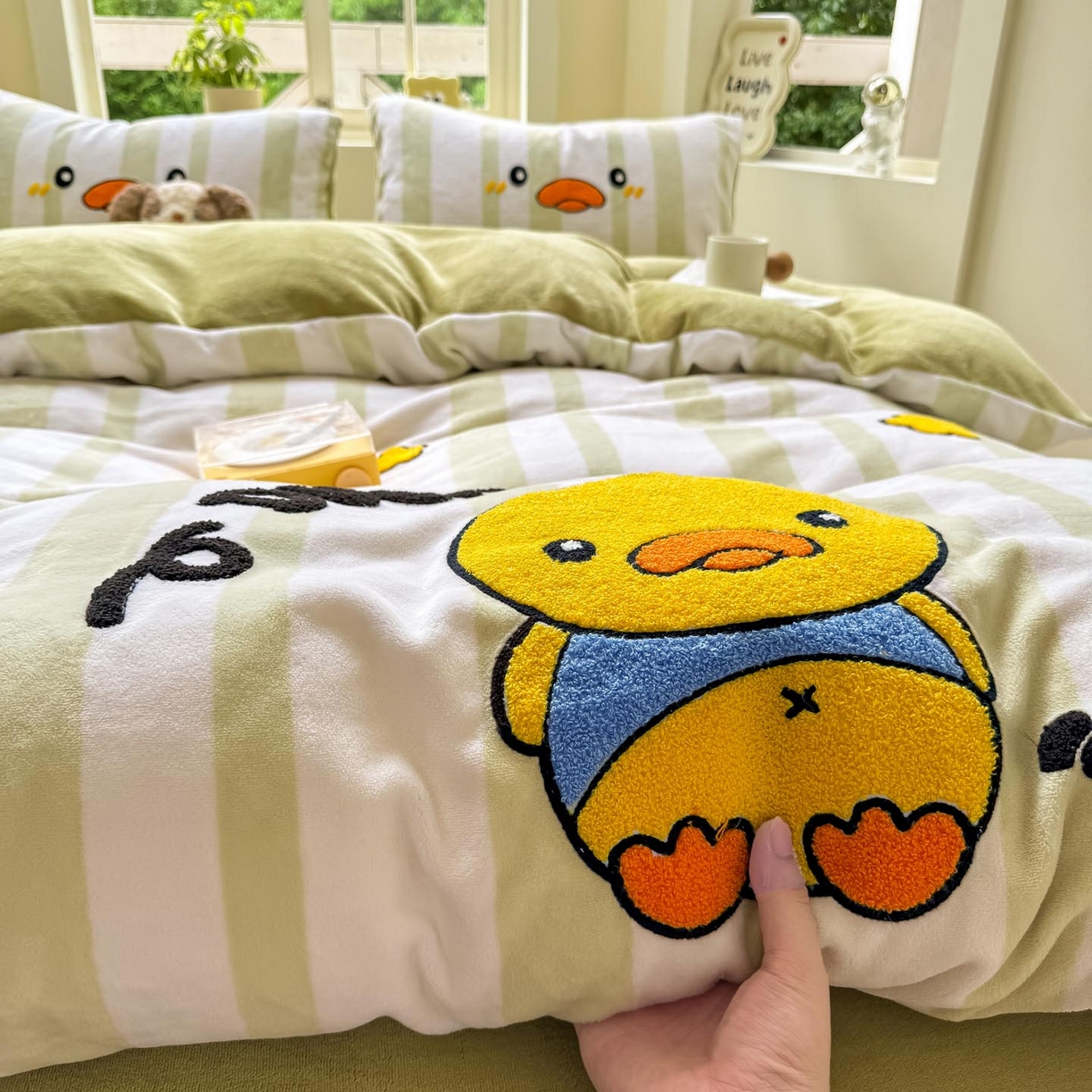 当前位置: 帅露家纺> 产品中心 > 2025秋冬新款A类高克重加厚牛奶绒毛巾绣卡通套件